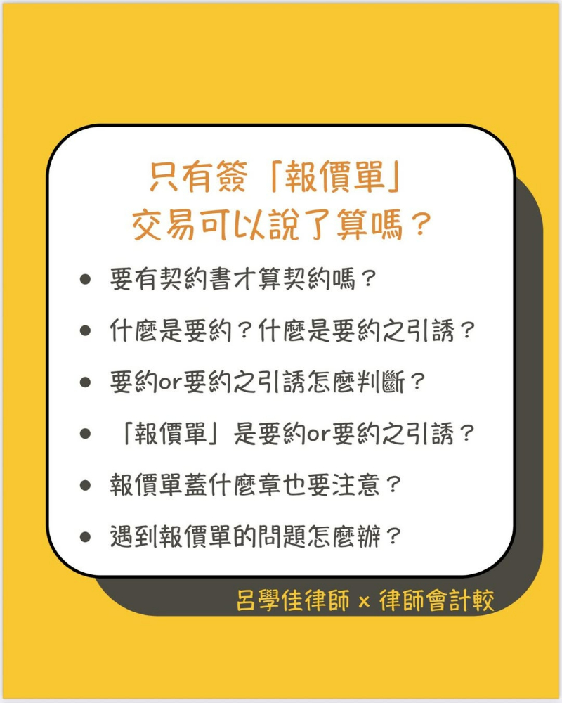 但在發出報價單的同時,卻也產生一個疑問「報價單算不算合約?」